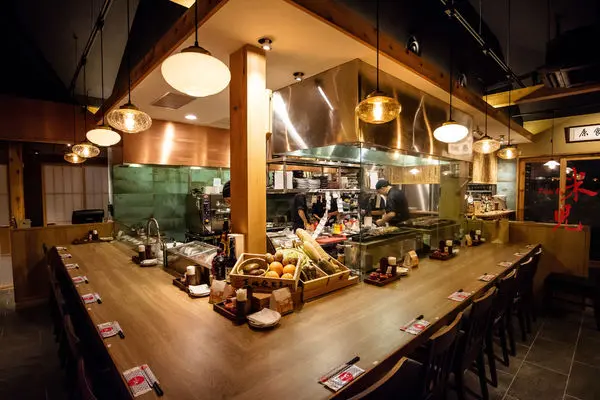 屋內最搶眼的就是這座吧台,吧台位置才能享受到船槳送菜的服務。