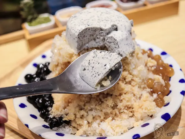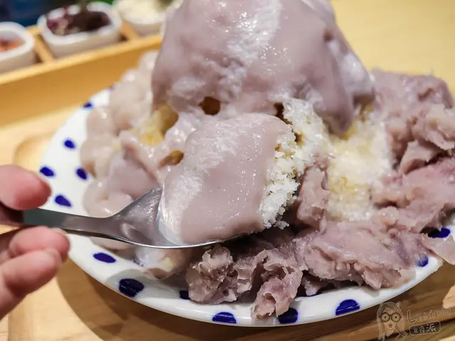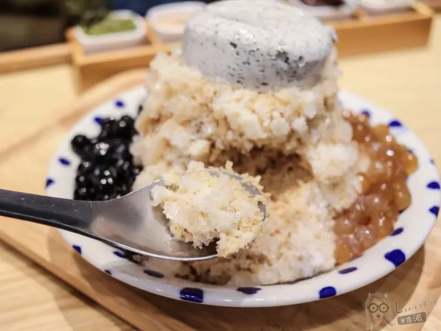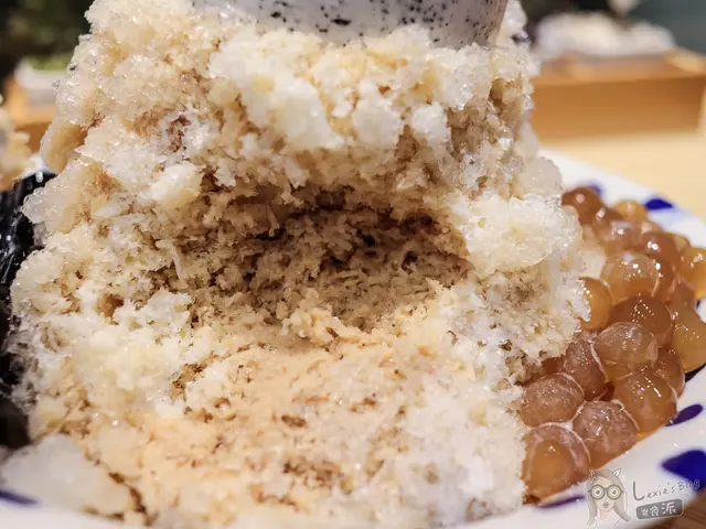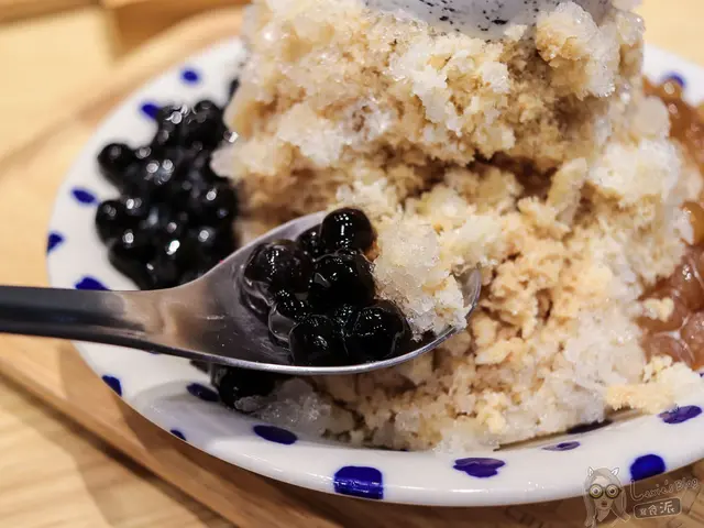 冰的部分淋上的就是奶茶,吃起來茶味非常重,豐滿哥皺了個眉頭,但我覺得茶味重是很合理的,因為隨著冰溶化,若是茶味不重那會被稀釋的很沒味道,這點我懂店家的用心考量。冰的部分甜味調配適中,不覺得甜膩。