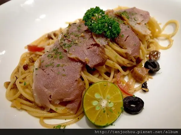 蒜味煙燻鴨胸義大利麵---$158+10%