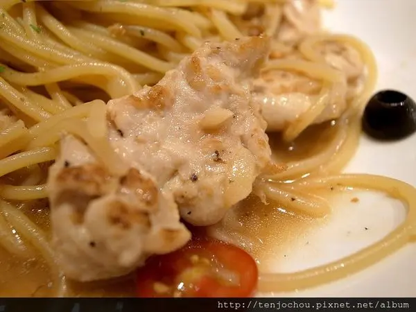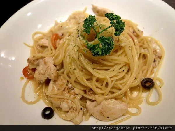 蒜味嫩雞胸義大利麵---$148+10%