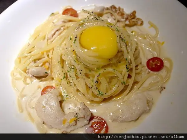 乳酪蛋黃嫩雞胸義大利麵---$168+10%