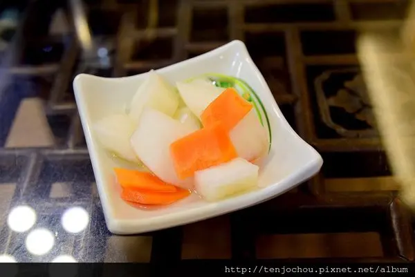 醃漬過的紅白蘿蔔,口感爽脆、酸酸甜甜的挺開胃