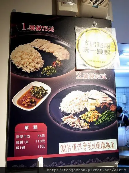 1號餐只有海南雞肉+飯,賣價75元;2號餐多了青菜,價格則是95元