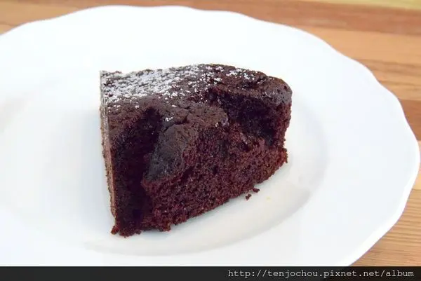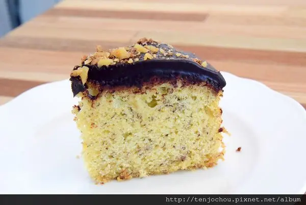 表皮香脆如淋上巧克力醬一般,蛋糕體濕潤綿密,常溫下擺著也不會乾硬