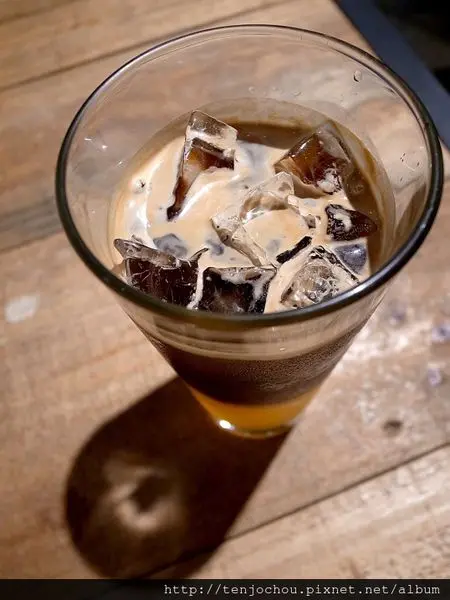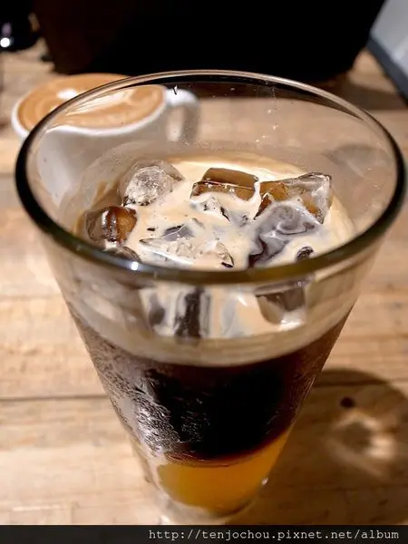上頭則是冰咖啡,兩者比例約1:1,漂浮的冰塊,視覺十分消暑