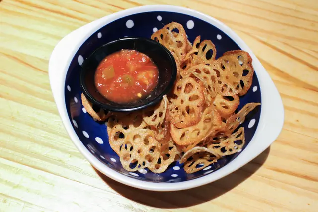 和我想像的蓮藕脆片不一樣,就是切得很薄、超薄,非常薄的蓮藕片,完全吃不到蓮藕口感和香氣,幾乎就像洋芋片(笑) 並不是批評的意思喔,朋友和我都覺得挺好吃的,蓮藕可以舒清肝熱,吃這樣的炸物比較沒有罪惡感吧