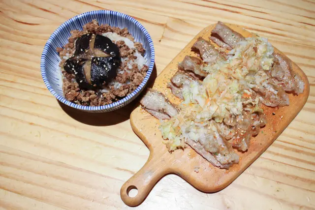 來家吶子很有意思的是,不比坊間居酒屋精緻,反而多了許多粗獷和古早味,例如這一碗阿嬤的香菇肉燥飯,硬是壓了一片大朵香菇,沒有肥肉的肉燥飯,光是這一碗就可以讓你吃飽了!
