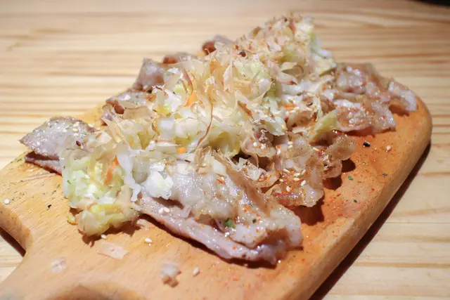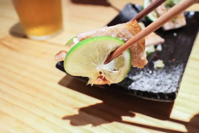 這個吃法也是很有趣,將檸檬片和豬里肌一起放入口中,我的味蕾頓時讓檸檬的酸先敲暈,在咀嚼時才感受到有吃豬肉啊!!如果喜歡吃酸的朋友可以試試,也是很新奇的吃法