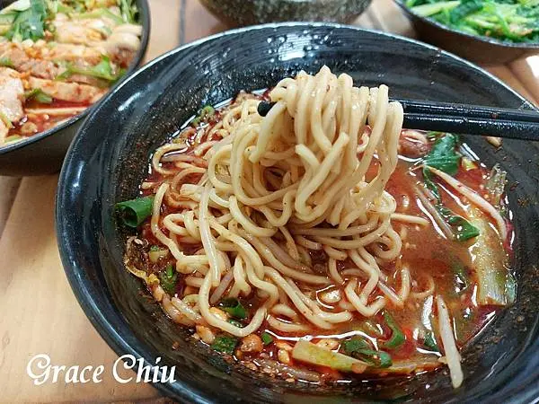重慶小麵,一訪點了小麻小辣酸辣粉,覺得辣度可以接受所以二訪的重慶小麵就點了中麻中辣,看起來辣油好像蠻厚一層但喝起來倒是沒有太多油膩感,除了吃光好吃的麵條,夠勁的湯也喝掉大半碗.