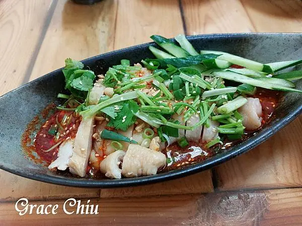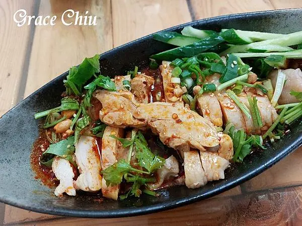 口水雞~冰鎮後的雞肉口感更加緊實,冰涼Q彈,有層次的醬汁辣中帶麻,辛辣但不嗆口,會讓人想多叫碗白飯來淋醬吃.