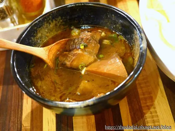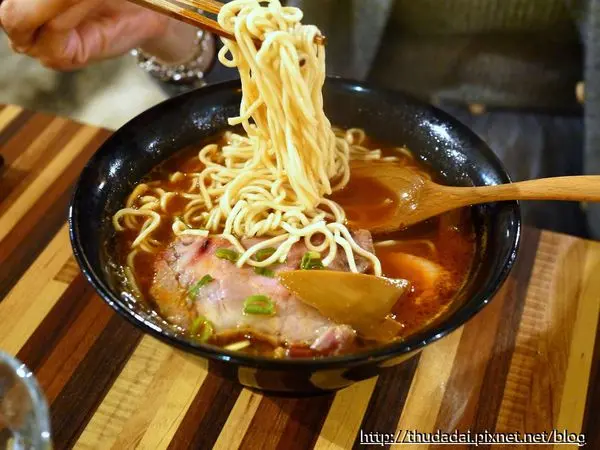 湯體味重而不稠厚,麵體較為含水,搭配之下有順暢感,不過滋味還是偏單調、不太耐吃。