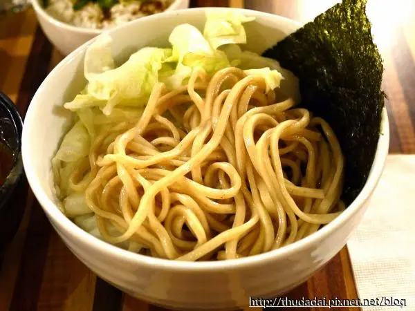 融入豚骨湯的沾汁有層次而不失蝦味的特色,沾附麵條的掛湯力好,