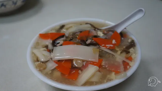 湯頭是比較濃的勾芡有點甜甜的順口又好喝