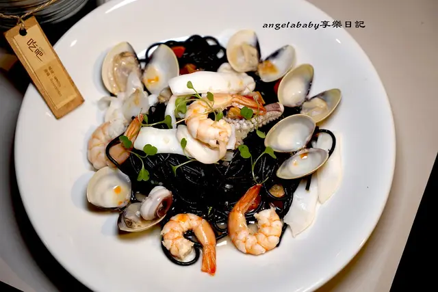 以滿滿的海鮮與新鮮墨魚汁製成的墨魚細麵
