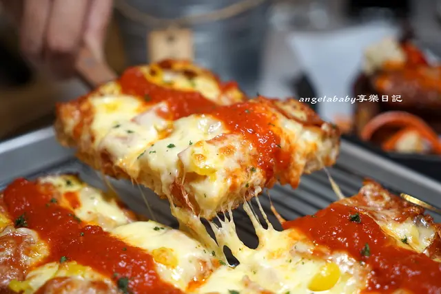 西西里肉鋪香辣腸與牽絲的起司、紅醬組合出一個視覺與味蕾的享受