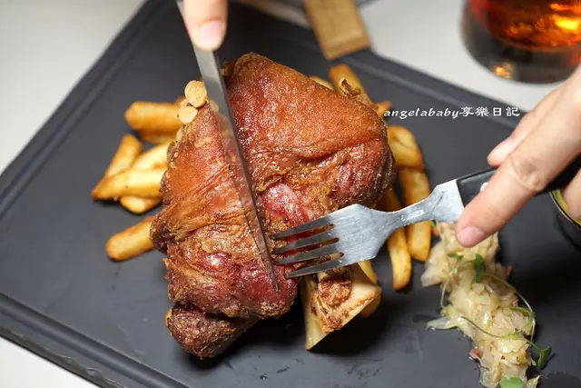 非常碩大的德式豬腳、醃製後油炸再烘烤