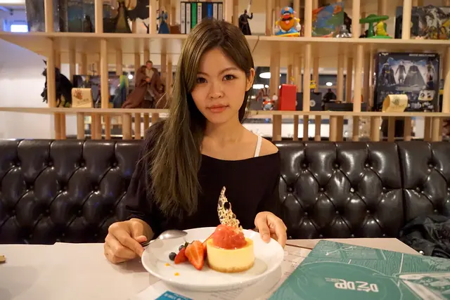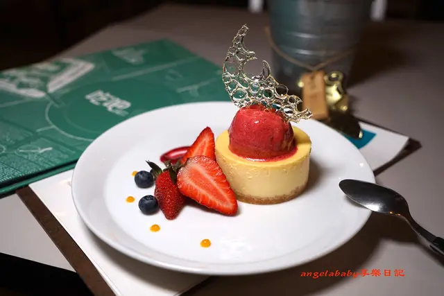 完美的餐後甜點就是起司蛋糕,上方插上一個如同夜晚月光般耀眼的糖片