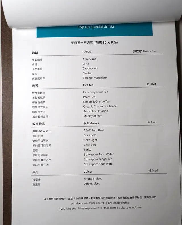 加價80還可以加購軟性飲品、果汁、茶、咖啡