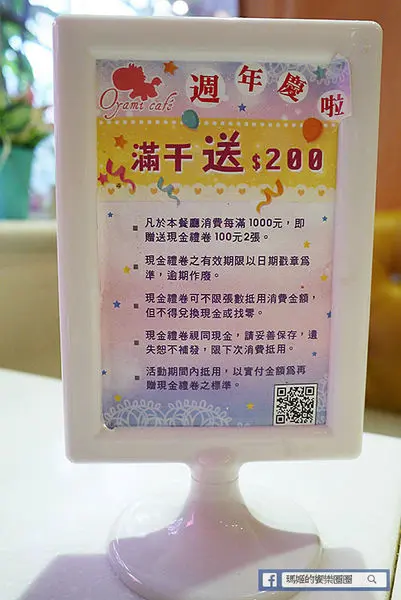 店內正值周年慶,來店消費滿一千元即贈送200元的現金禮卷活動。