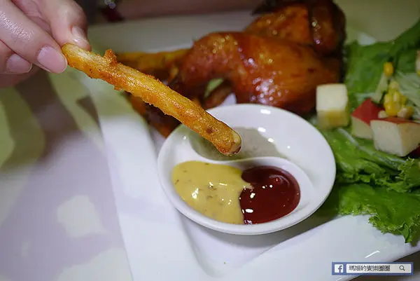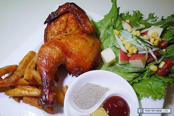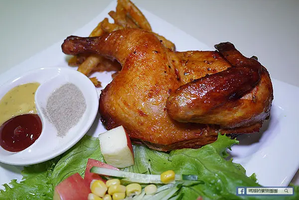 迷迭炭烤奶油半雞套餐480元,瑪姬本人很愛香噴噴的烤雞,看到菜單裡有它就毫無懸念的點上它。