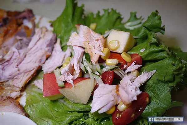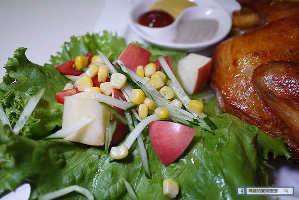 套餐搭配有韓式甜生菜,除了生菜外還有玉米粒、蕃茄、蘋果、小黃瓜,是爽脆清甜的口感。