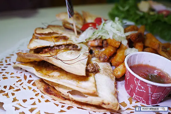 薄脆的墨西哥烤餅裡面夾了美式辣蝦和豬肉,微辣的口感入口就帶來味蕾的滿足!是美式料理中我個人很喜歡的一道美食。
