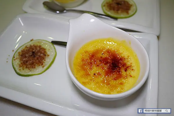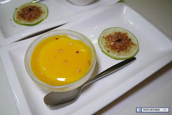 套餐附的甜點有芒果奶酪和焦糖布雷,旁邊還搭配新鮮檸檬片配糖,喜歡酸甜交織口感的朋友可以嚐試。