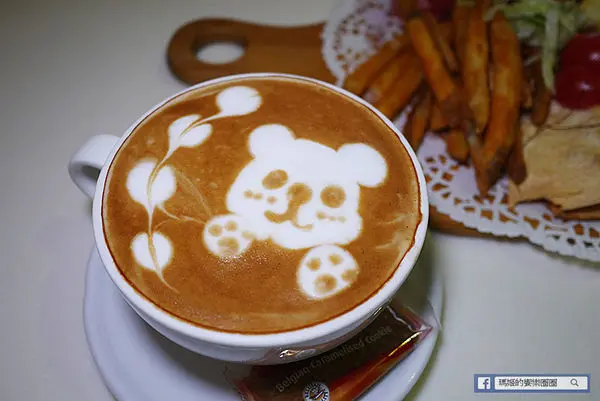 熱卡布奇諾裡面有可愛萌萌的小熊拉花,還搭配一片餅乾,咖啡的香濃和奶味充份融合,這時候在搭配甜點一起吃是最佳的餐後聊天飲品。