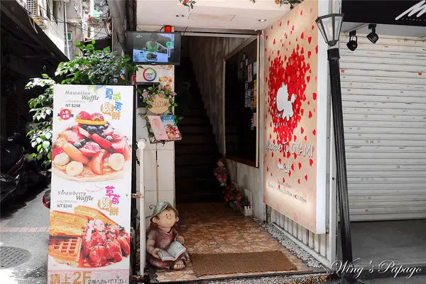 位在西門鬧區巷內二樓,有著大大的咖啡杯造型指引方向。
