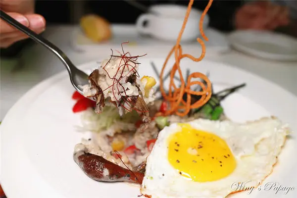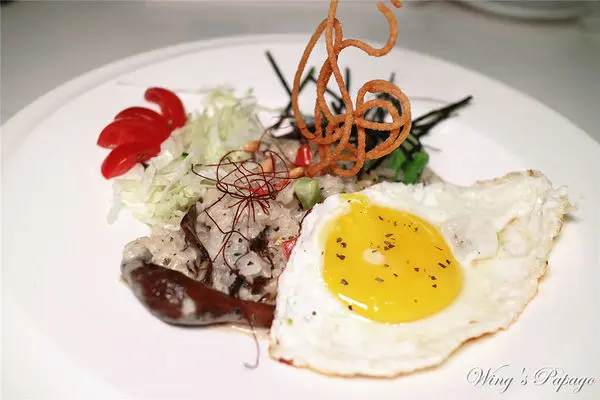 將太陽蛋攪入燉飯中一同食用風味更佳,米飯燉煮的軟硬適中,