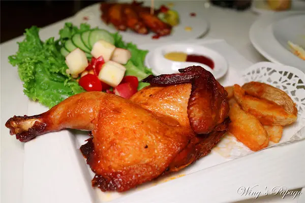 烤半雞肉質Q彈,入口散發迷迭香及醬汁炭烤香氣,嚐來鮮嫩多汁,