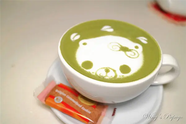 熱抹茶那堤上居然有著可愛的小熊拉花,整個少女心都被激起了,