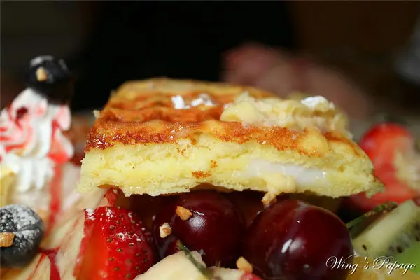 鬆餅非常厚實,中間還包有麻糬增添口感,無論是搭香濃冰淇淋或是香甜水果食用,