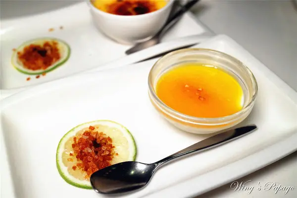 餐後點心為手工奶酪及烤布蕾,一旁另附上糖霜檸檬片,