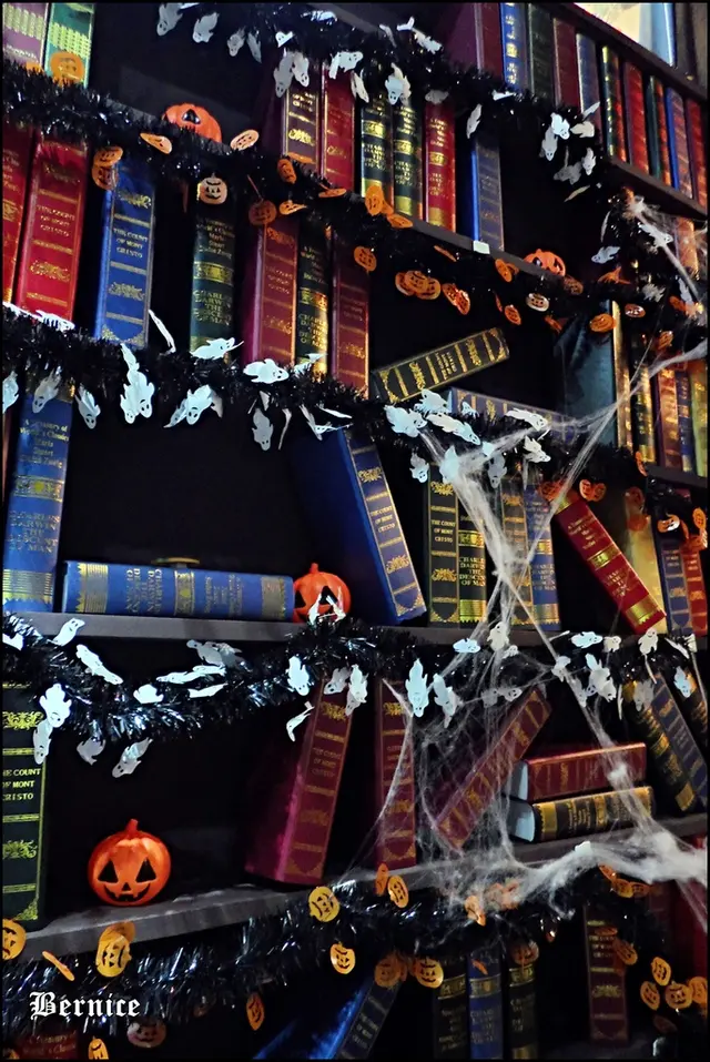 適逢萬聖節,到處都是蜘蛛絲和南瓜造景