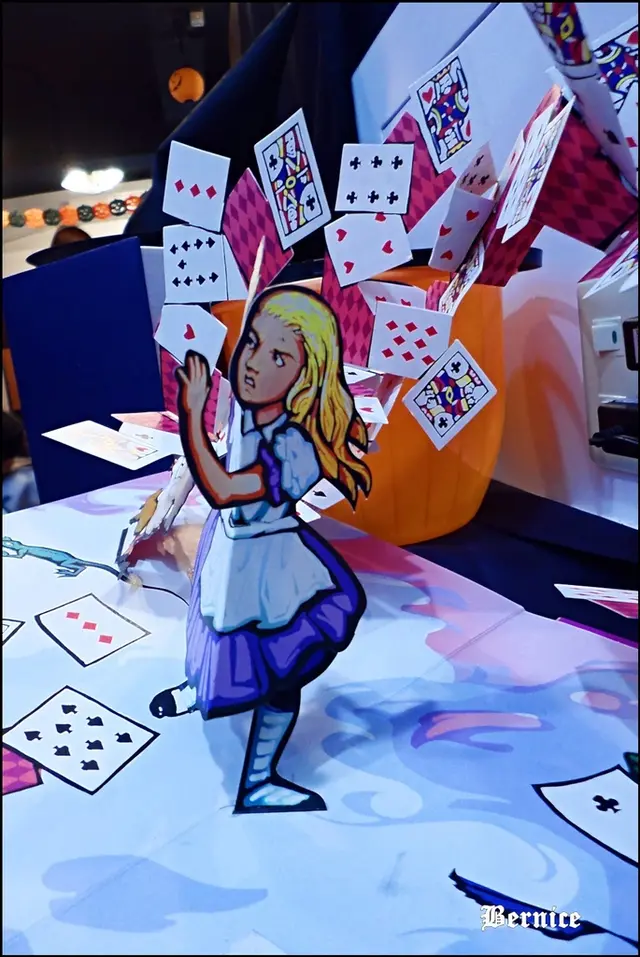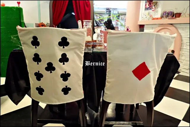 椅子則是撲克椅套(象徵紅心皇后的衛兵)