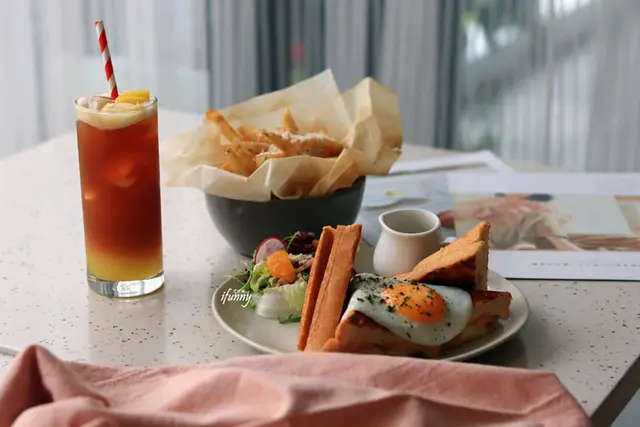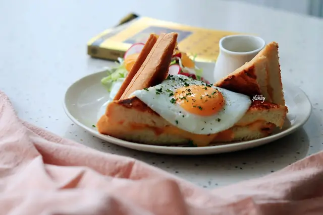 香煎過的鮮奶吐司帶著金黃的誘人色澤,加上邪惡的半熟太陽蛋,實在是太誘人了!但可能是我們拍照太久,以致於沒有起司牽絲的畫面,而且起司冷掉後鹹度也更明顯,因此大家還是儘量把握最佳賞味時間,否則太對不起主廚的用心烹調了!