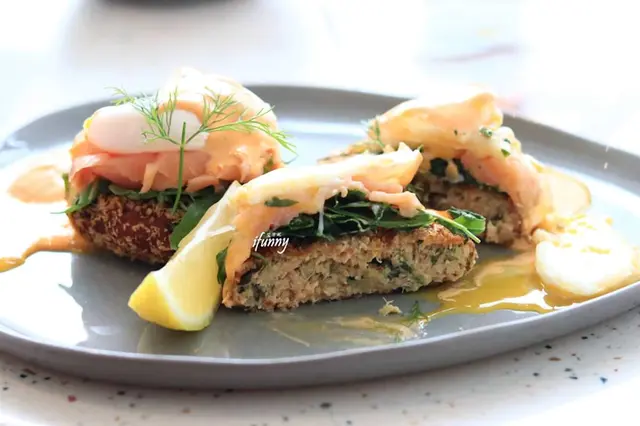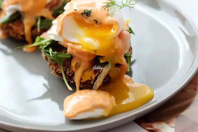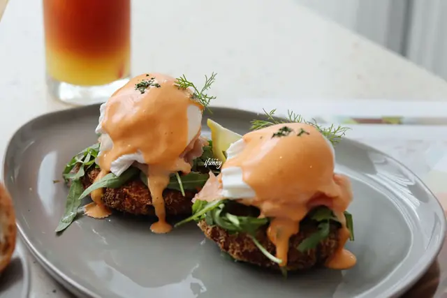 英式早餐的經典,創新地不以英式鬆餅為底,改以自製的鮪魚塔為基底。