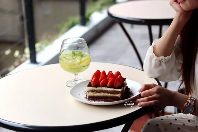 趁著露台有空位,我們拿著甜點到戶外拍照,這樣更有野餐的氛圍了!