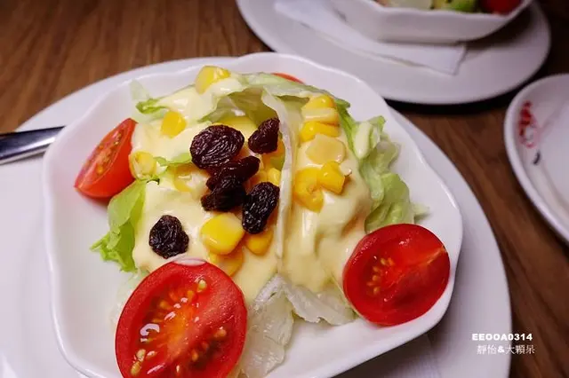 沙拉的份量剛剛好,有三種醬可以選擇:優格、和風及油醋,我們點了優格及和風,兩者各有其特色~個人偏愛酸酸甜甜好滋味的優格醬,和風醬則是清爽又開胃!