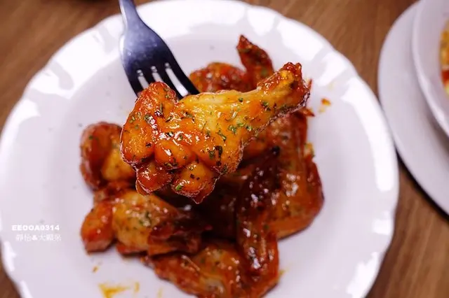 烤得油油亮亮的雞翅腿好誘人啊~在拍照時孩子們就吵著要吃,原本還怕太辣孩子會無法共享,結果這辣度孩子可以接受喔~跟大人一起吮指回味