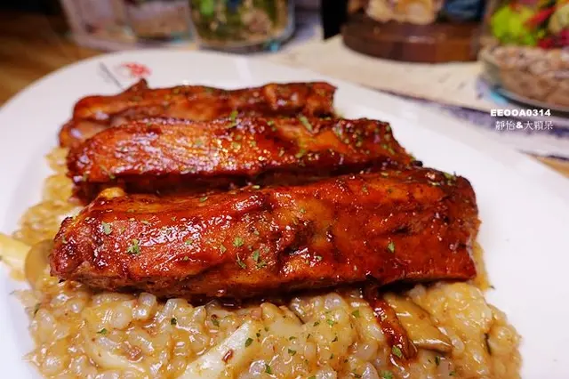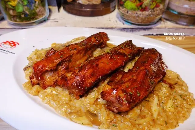 看到豬肋排讓肉肉控的我忍不住就點了,果真就跟菜單圖片一樣有著份量十足的豬肋排,整整有三大支,可以啃得開心,點一份排餐及燉飯雙重享受