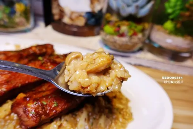 燉飯更是充滿著驚喜,吃起來軟硬度剛剛好,還吸取了高湯精華,吃起來很有風味,然後燉飯裡的蘑菇更是多到驚人~幾乎每一口都可以吃到,讓燉飯吃起來完全不單調