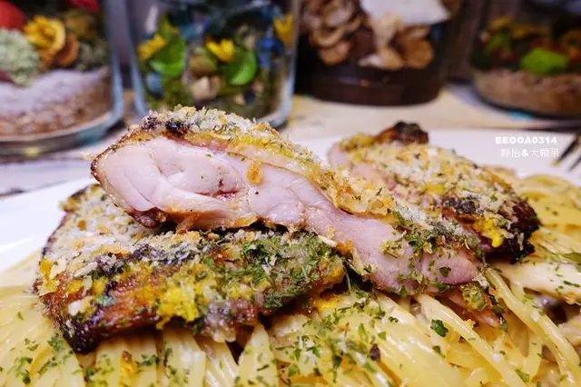 看看這雞腿~肉質軟嫩帶汁,還有著雞皮的焦香,每一口都好滿足,不過有著濃濃的香草味道,若不愛香草的可能就要跳過了