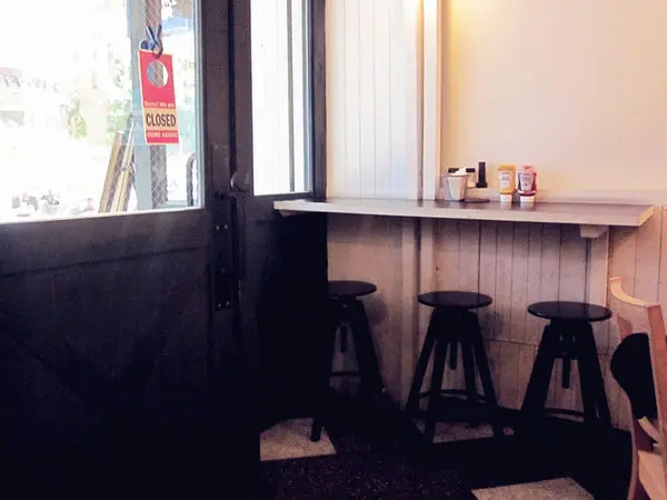 澳森漢堡店內空間不大,位子有限,僅有四張桌子和吧台的零星座位,用餐時間來先電話訂位比較保險,要不然就得外頭等位了。