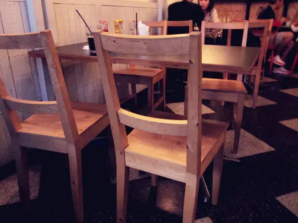 黑白相間的地板,搭配木質桌椅,整家店呈現簡單大方的美式工業風,粗曠風格,感覺很適合大口吃漢堡呀,輕鬆自在的用餐感。