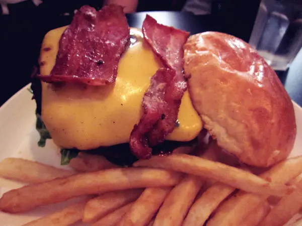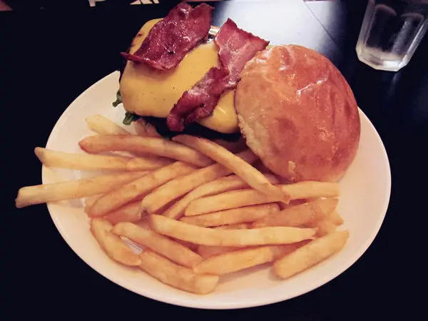 培根起士牛肉堡,多了兩片培根,瞧瞧起司上那兩片烤培根,看起來真可愛。多汁牛肉,搭配培根味道也不賴。薯條炸得也剛好,酥脆十足。