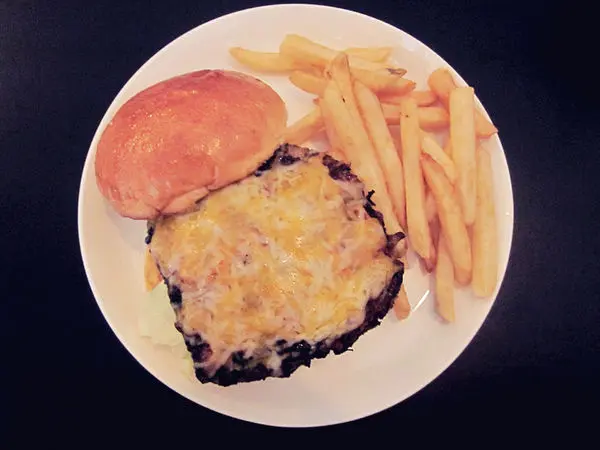 炭烤起士雞腿堡,看起來分量十足,店家嚴選去骨的雞腿排,將雞腿用獨特醬料醃漬過後,撒上兩種不同起士後碳烤,融化後的起士將雞腿緊緊包圍。雖然熱量破表,但美食當前實在是顧不了那麼多,趕緊大口咬下,體會肉汁四溢的滋味呀!