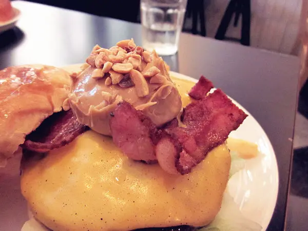 花生醬培根起士牛肉堡,濃郁的花生醬和厚實牛肉簡直絕配,味道鹹甜滋味好,肉汁充滿花生香氣,美味無比,只能說聲AWESOME呀!!