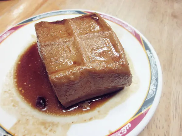 滷豆腐。傳統豆腐滷得味道很透徹,口味鹹香,口感柔軟,很適合下飯。